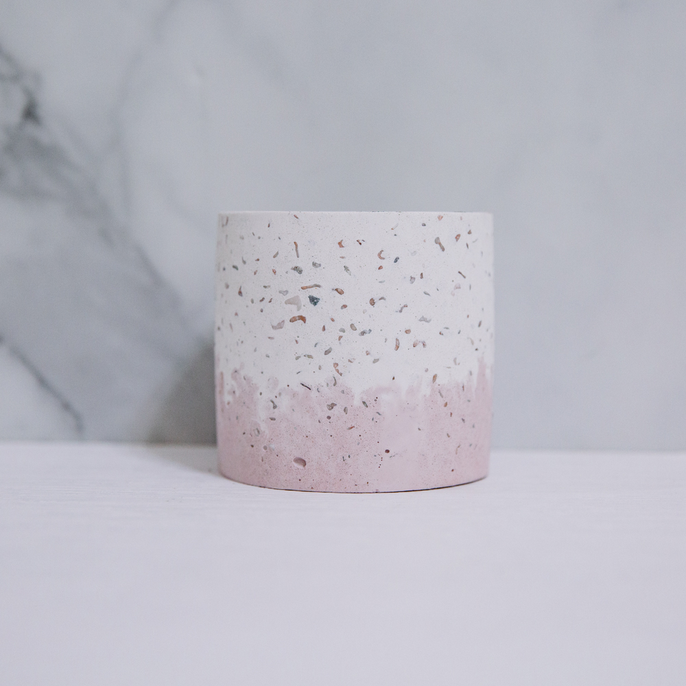 |水磨石|『3寸』粉染玫瑰石圓型水泥盆器