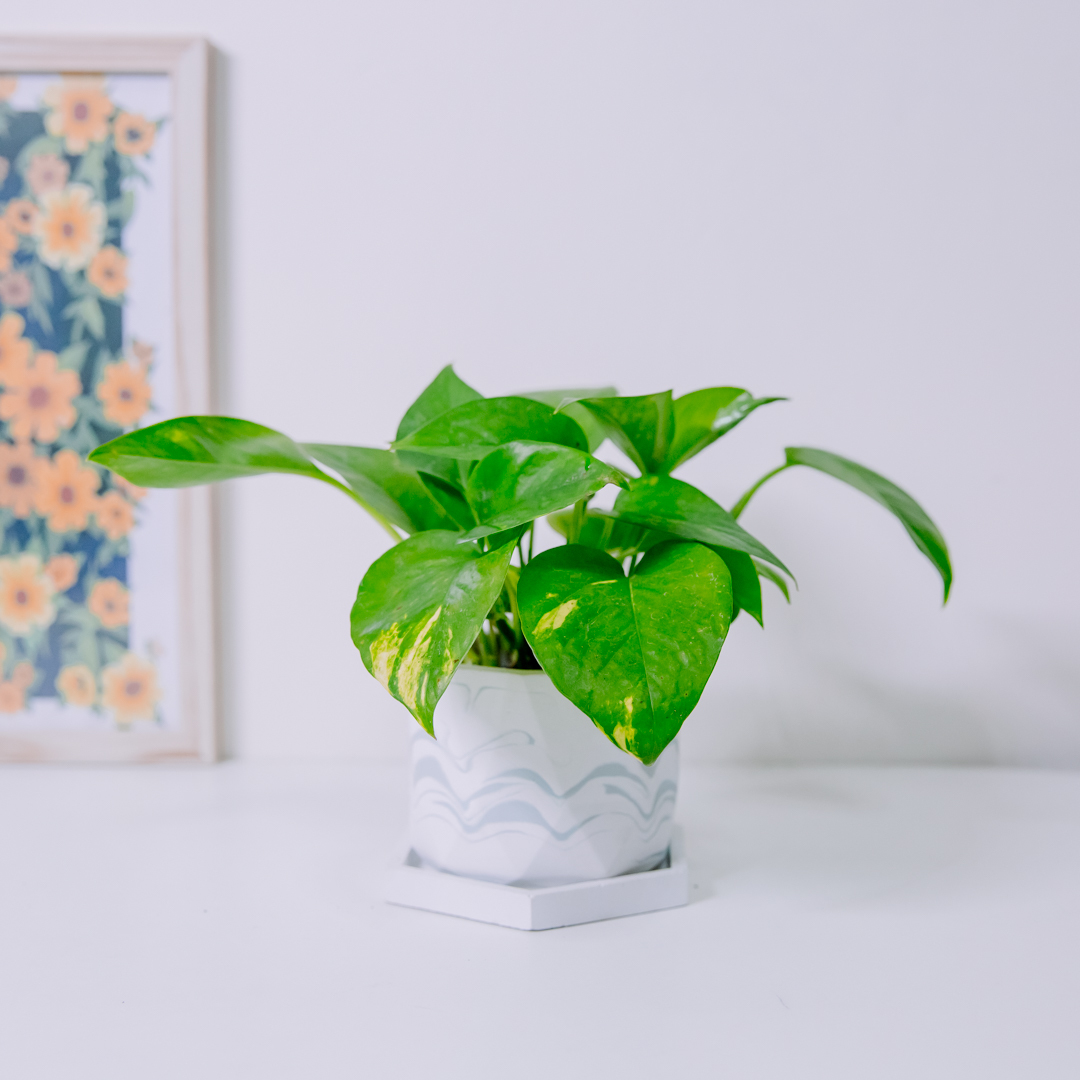 黃金葛又名為綠蘿,為天南星科多年生藤本植物,原產於坡里尼亞。非常好照顧且生長迅速,也擁有很好的空氣淨化能力,很適合放在廚房、浴室等室內環境,生命力強韌不用費心照顧也能長得茂密漂亮,是很適合所有環境養殖的植物唷!