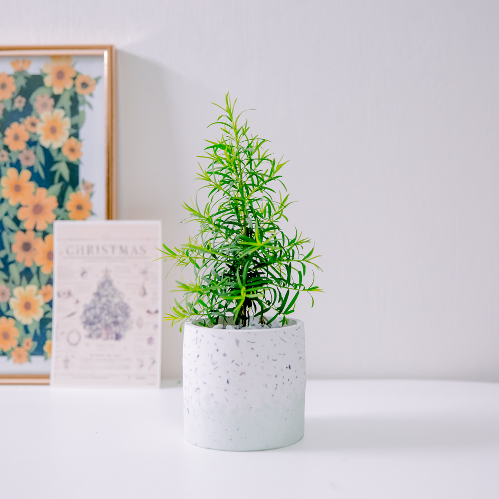 澳洲茶樹原產於澳洲,為桃金孃多年生木本植物,喜歡日照充足的環境,樹形挺拔,葉片細長互生,有特殊的香氣,為常見精油的原料,是廣泛被種植於家中的園藝樹種。他是非常好種植的香草作物,很適合台灣的天氣,也有防止蚊蟲的效果,如果用他裝飾一盆充滿精油香氣的聖誕樹,也是非常適合的唷!
