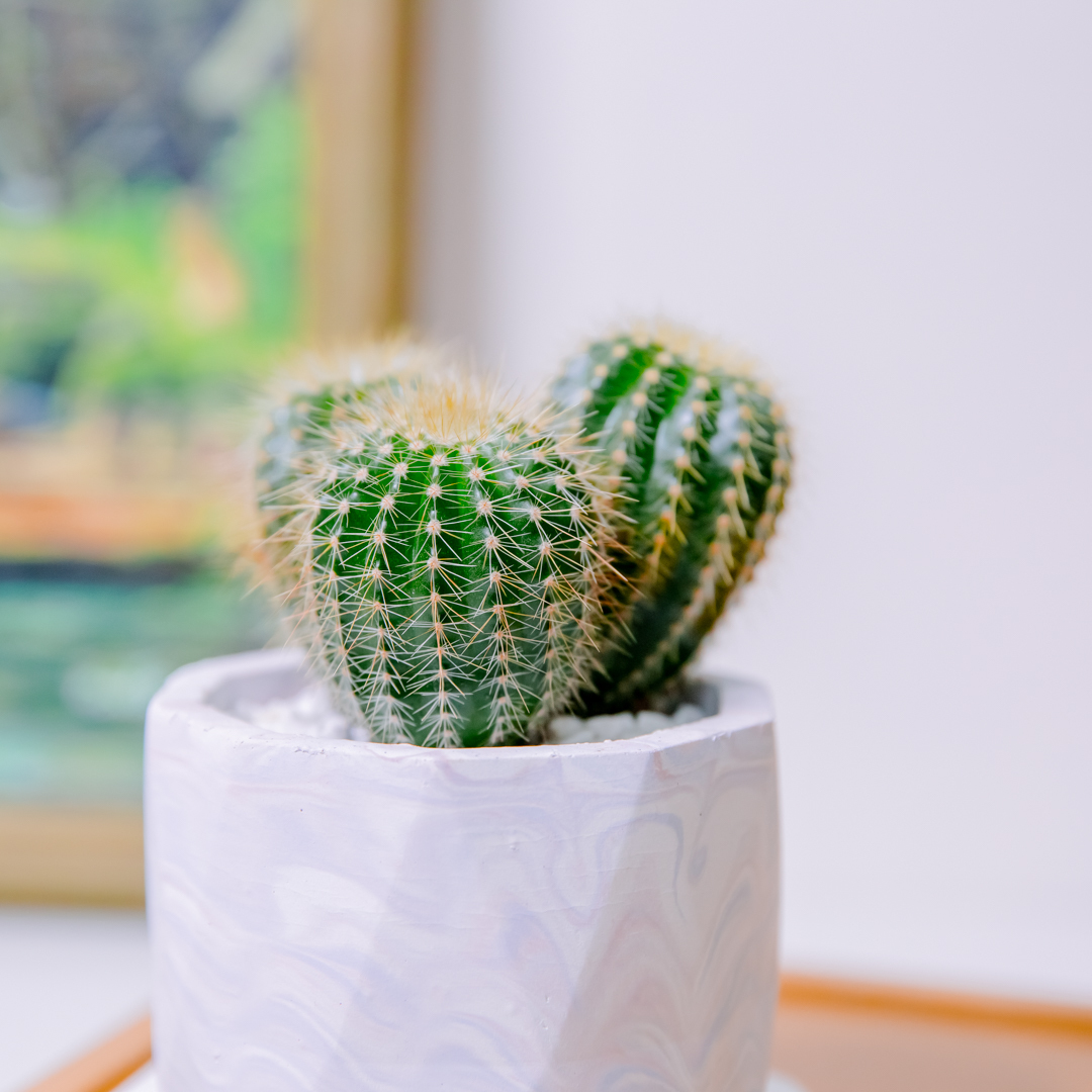 英冠丸原產於巴西至阿根廷為仙人掌科的多肉植物,白色、淡黃色的刺覆蓋植株,到頂部會匯聚成一叢小小的刺就像是一個小皇冠!