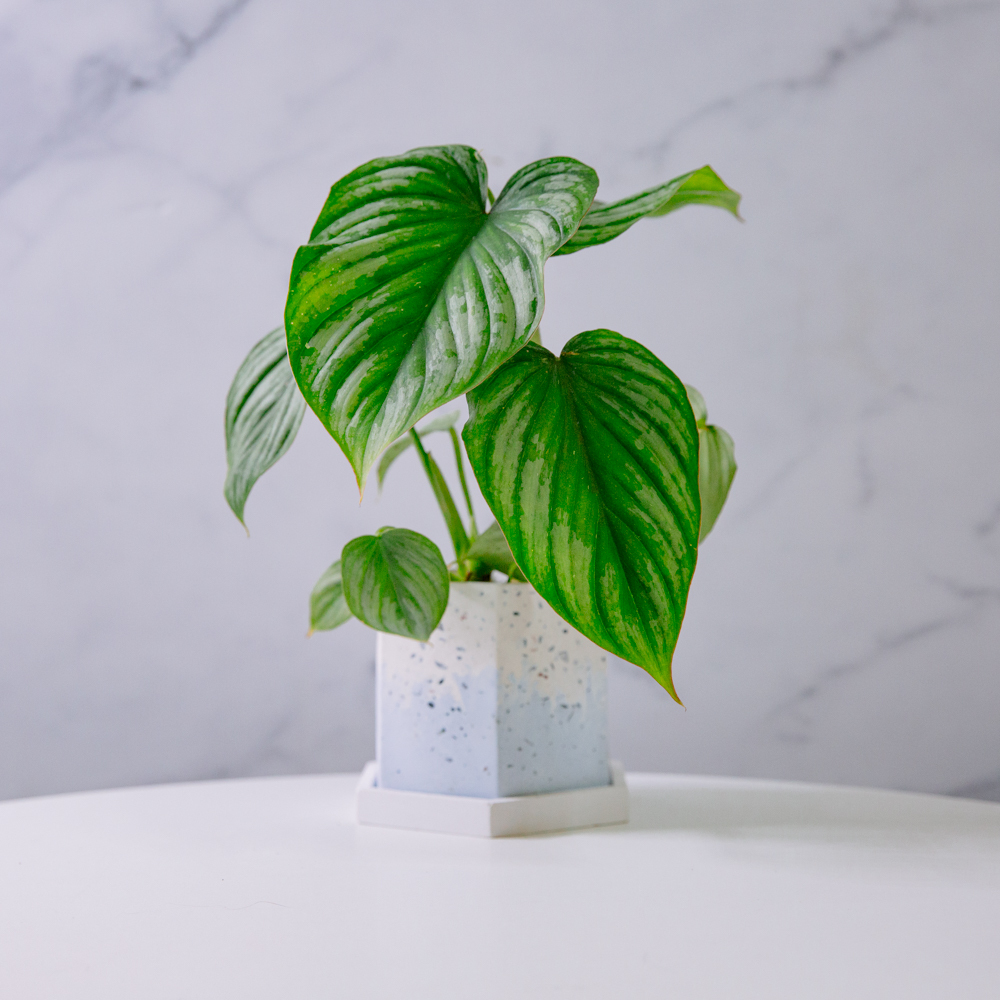 白雲蔓綠絨,為天南星科,喜歡溫暖潮濕的環境,春夏秋為他的生長季。耐陰能力強,可以放置於室內散射光的地方都很好養護,蔓綠絨在照顧上需要特別注意空氣的濕度,維持足夠的空氣濕度才能讓葉片健康漂亮,並且不容易遭受病蟲害攻擊(如紅蜘蛛、介殼蟲等)。