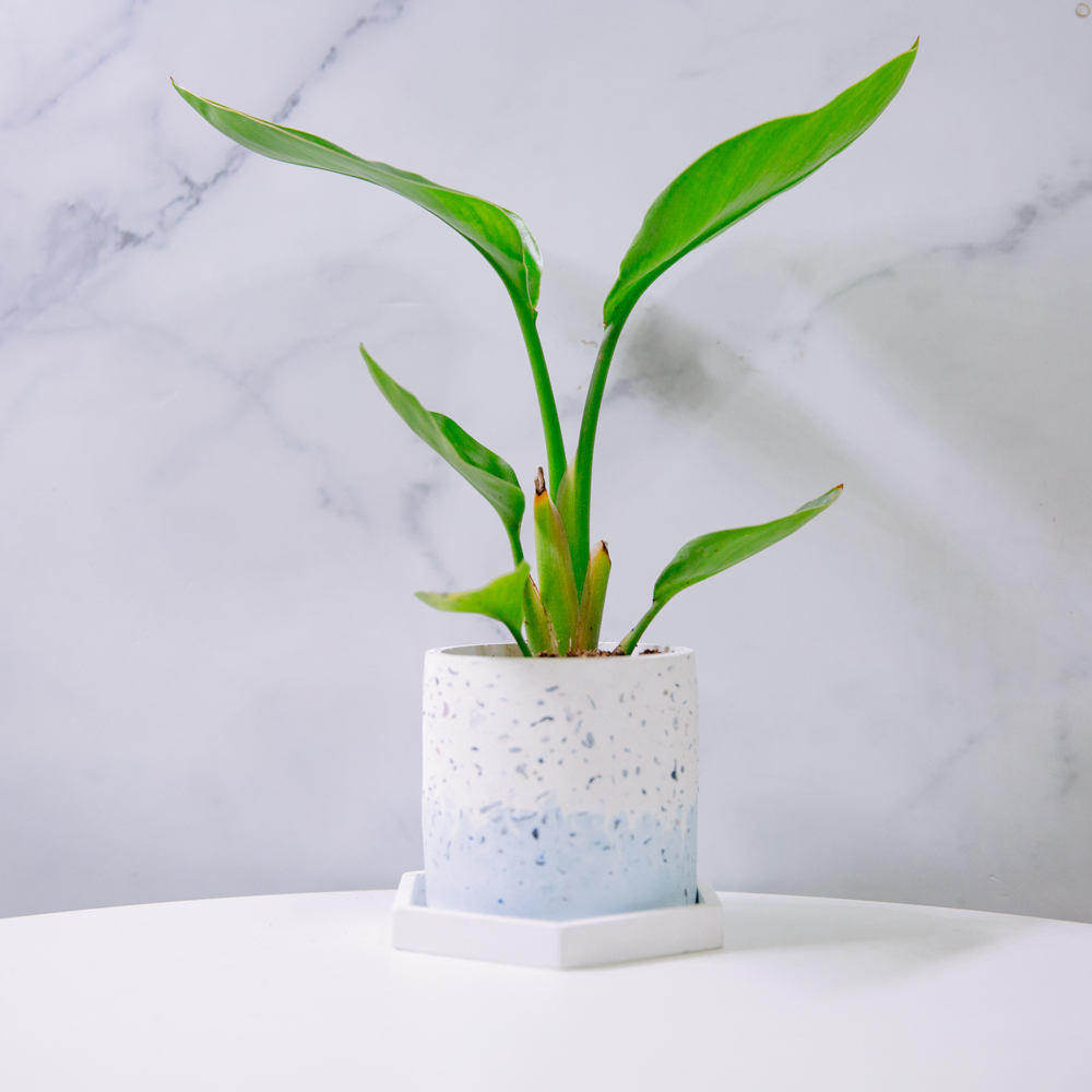 天堂鳥,原產南非,喜歡溫暖且明亮的地方,也喜歡較高的空氣濕度。長長的葉柄加上光澤對稱的葉片看起來非常的舒服~擺一盆小天堂鳥在身邊,有如置身熱帶島嶼,讓上班的疲累都消除!!在家中擺一盆中大盆的天堂鳥,也會讓家中整個充滿雨林風情呢!